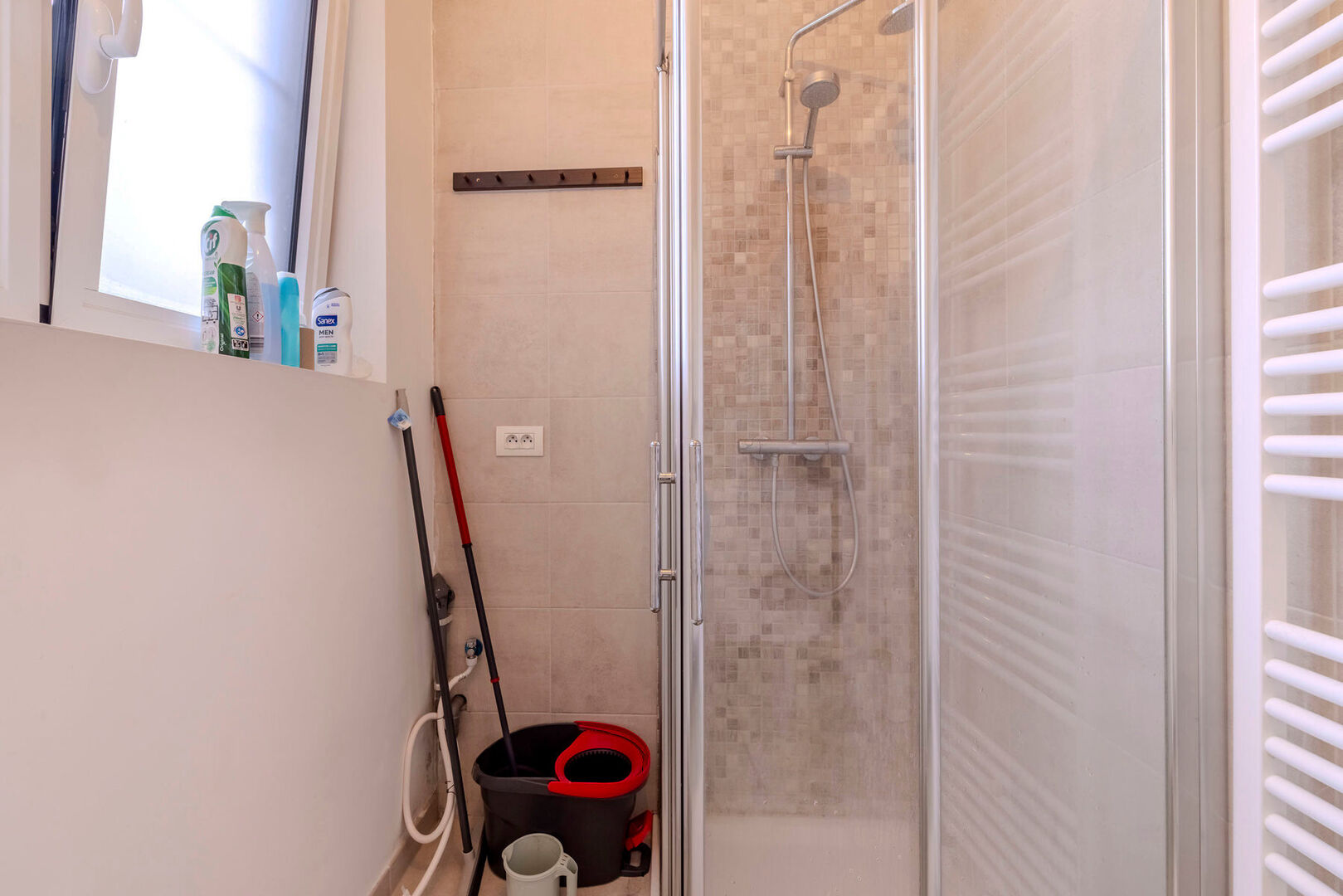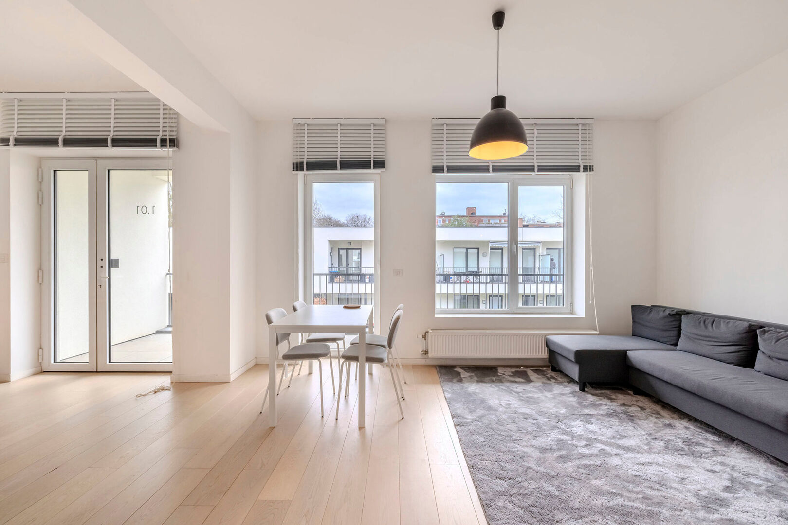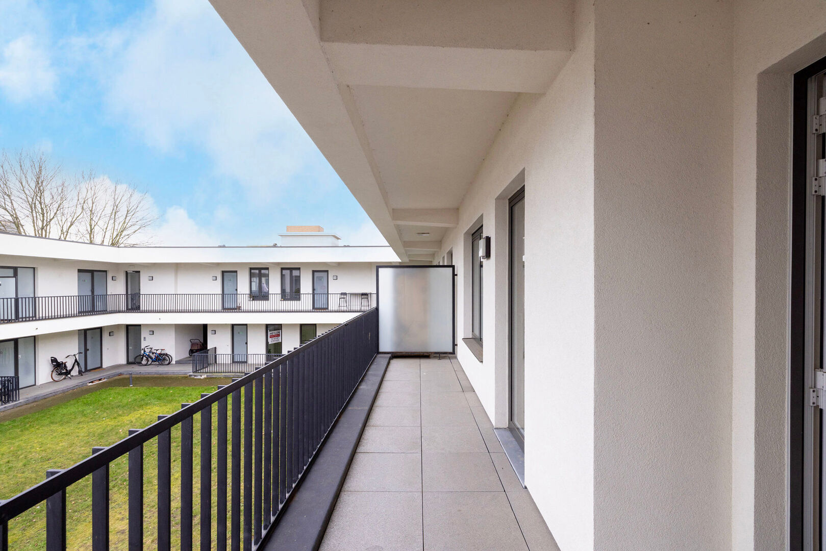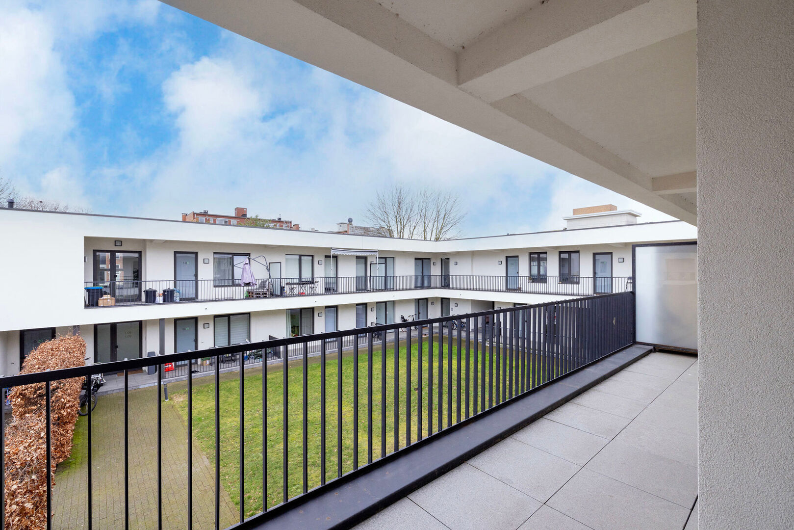 Buitenruimte: groot terras, over de volledige breedte van het appartement, dat uitkijkt op de gemeenschappelijke stadstuin.