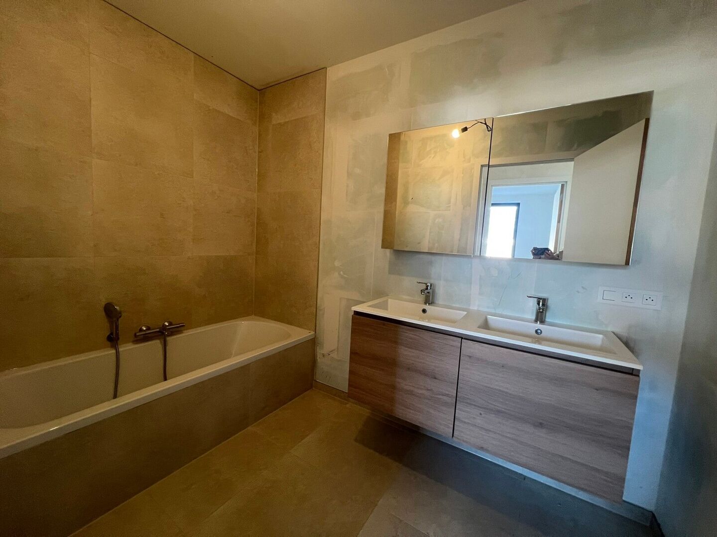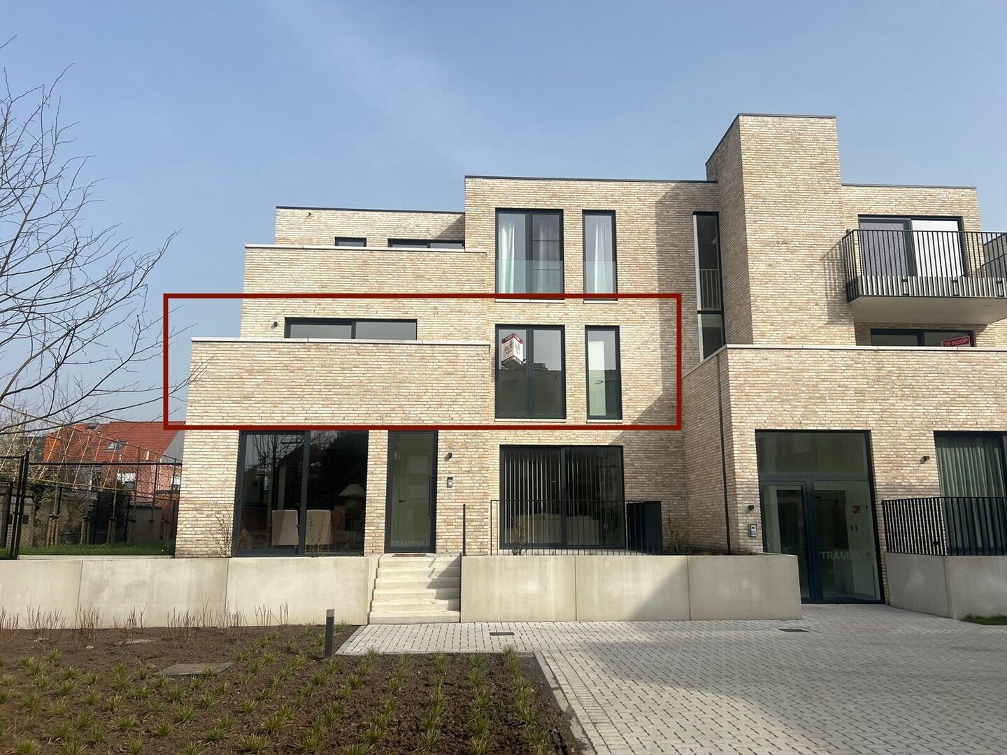 Laaste nieuwbouwappartement (134m²) met 3 slaapkamers en ZW-terras gelegen op de eerste verdieping, rustig gelegen helemaal achteraan in het project!