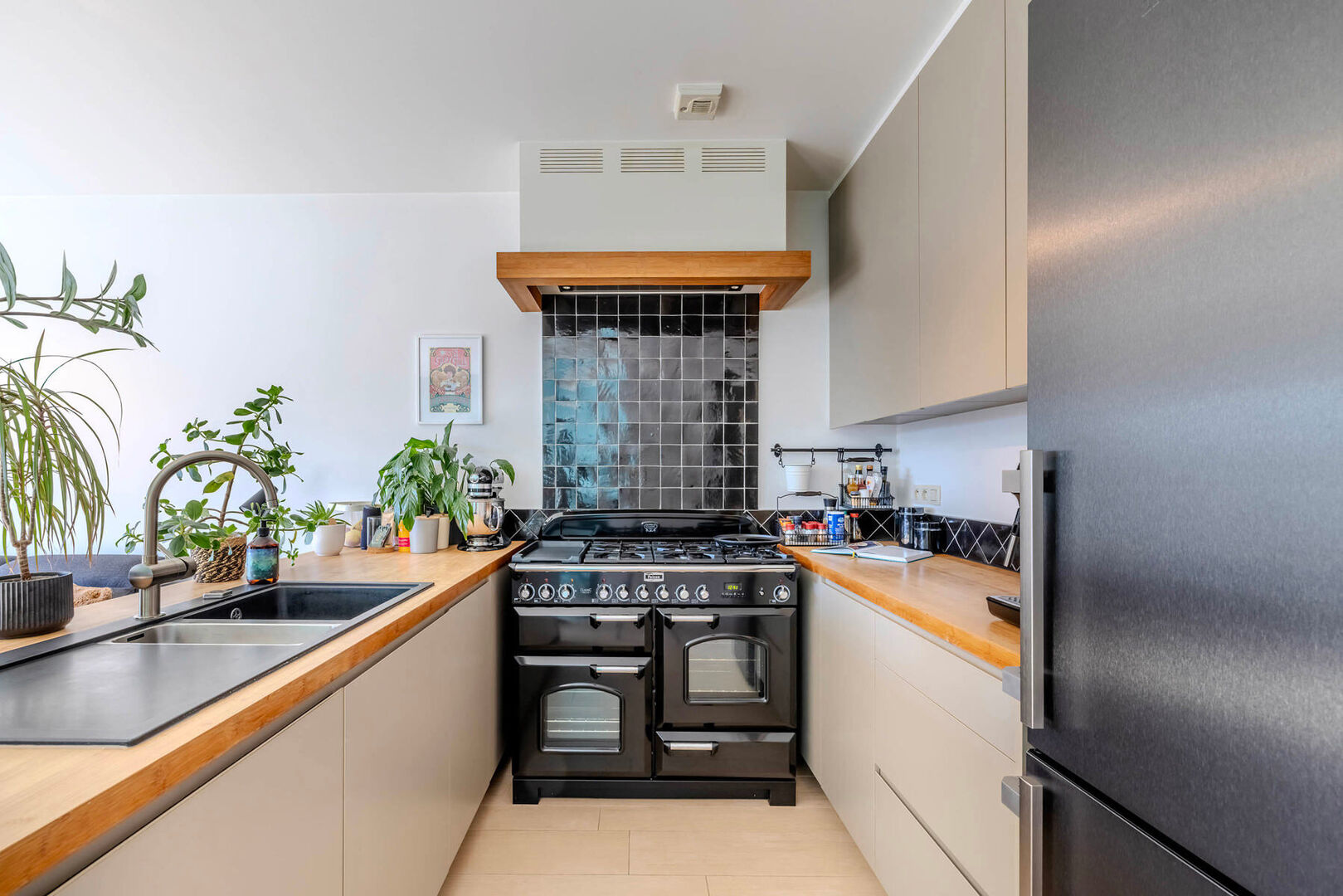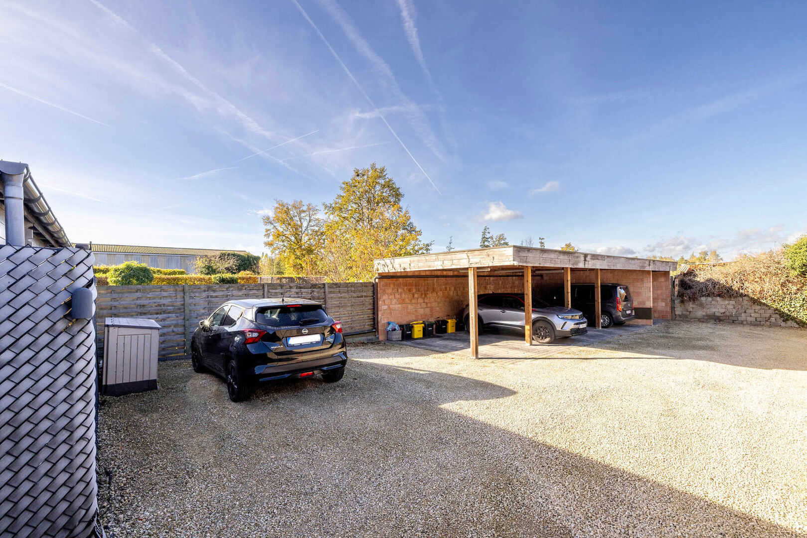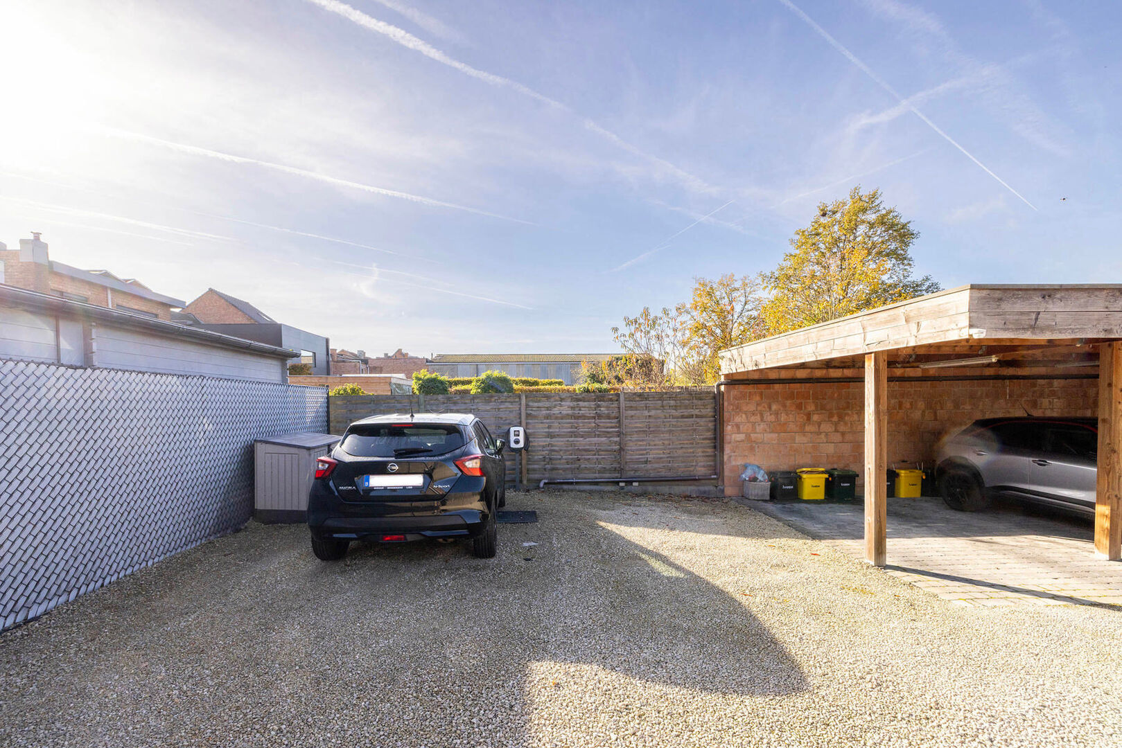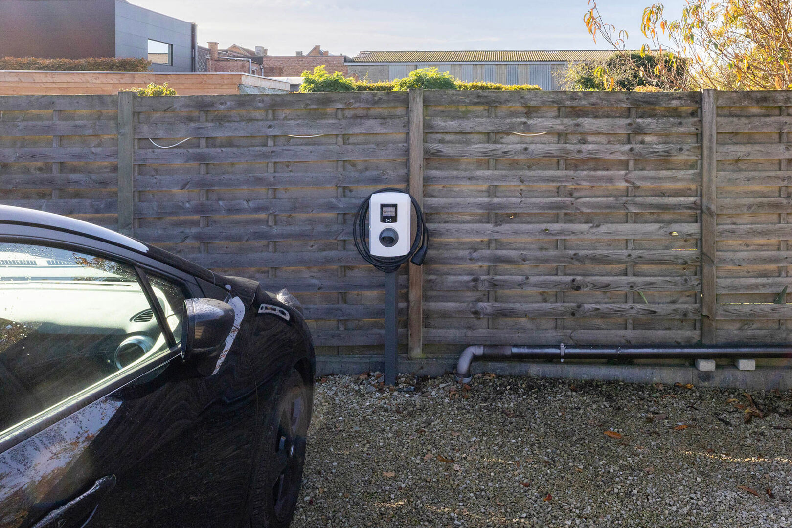 Buiten biedt de eigendom drie autostaanplaatsen én een privatieve laadpaal — ideaal voor wie elektrisch rijdt of dit in de toekomst overweegt