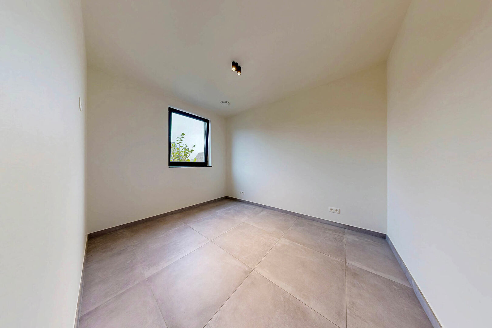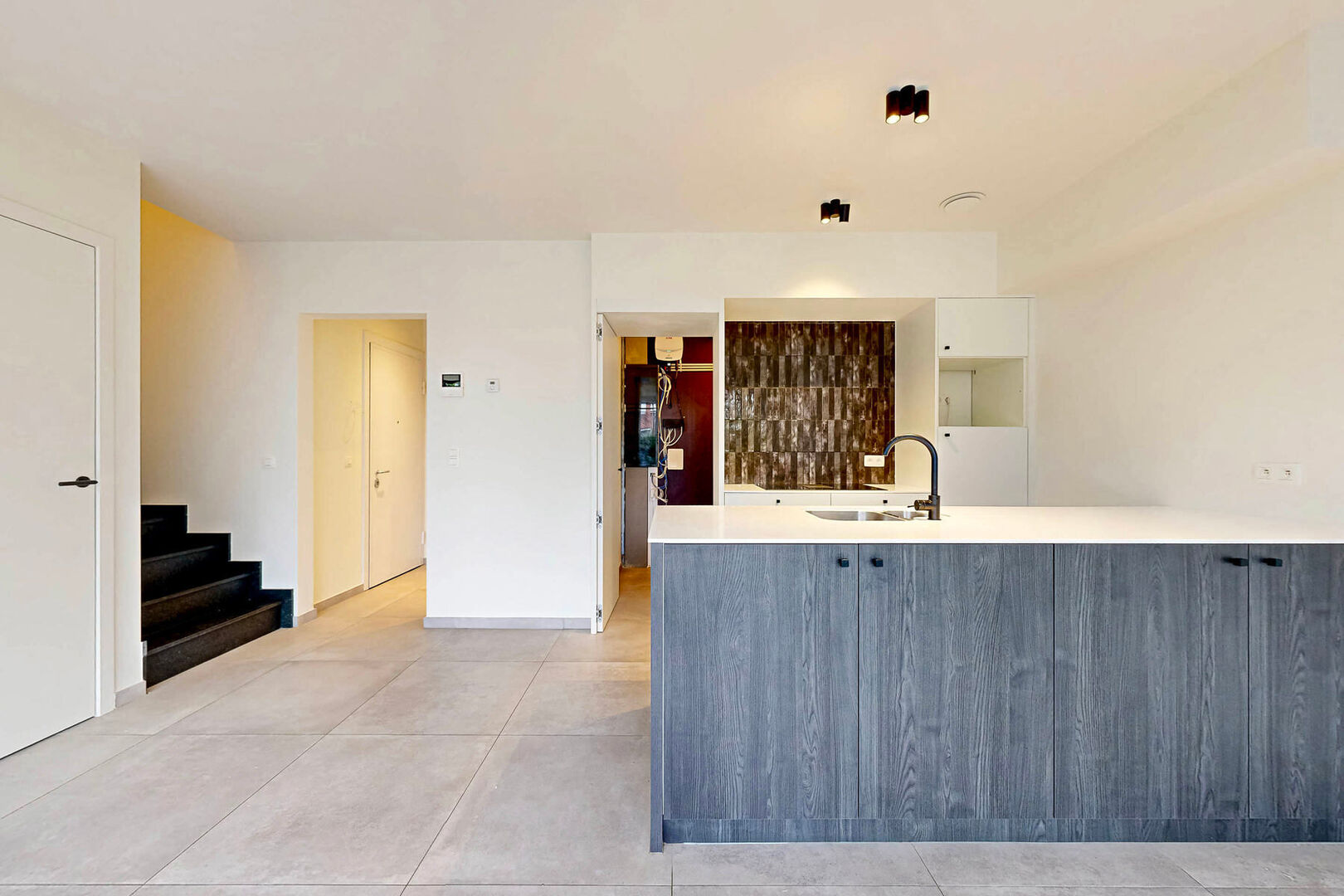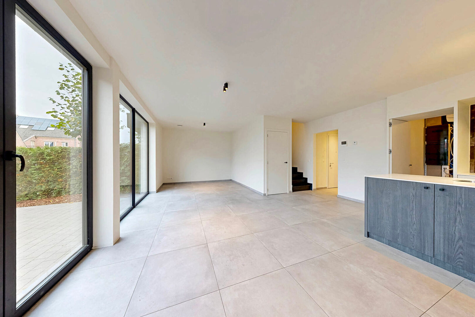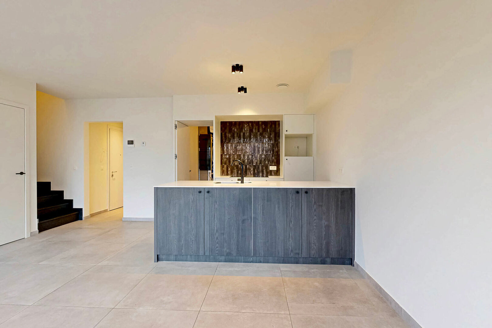 Instapklare en energiezuinige duplex met 2 slaapkamers, e-peil 6 (!), terras / tuintje, gelegen in een doodlopende straat doch in het centrum van Oelegem.