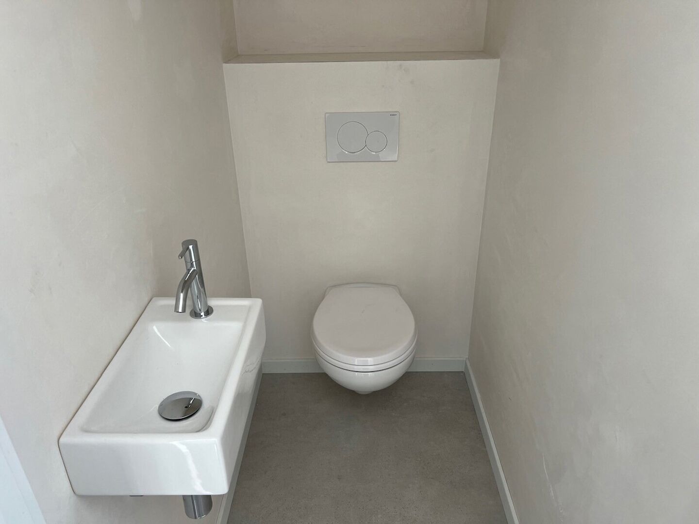 Nieuwbouw afgewerkte duplex (98m²) met aparte ingang, 2 slaapkamers, achterliggend terras (15m²) en bovengrondse parkeerplaats.
