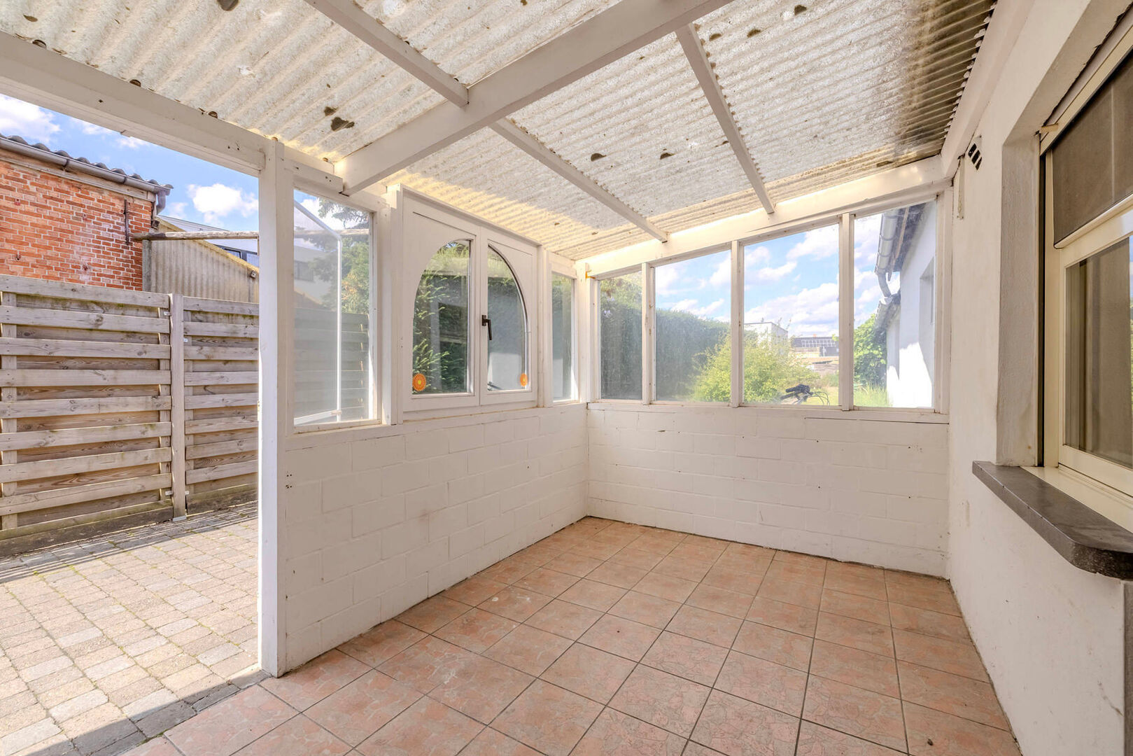Oprit vooraan de woning voorzien van 2/3 parkeerplaatsen; automatische toegangspoort; ateliertje (vroeger kapsalon) achter de woning, voorzien van water en radiator; volledig omheinde privatieve tuin met aangelegd terras.