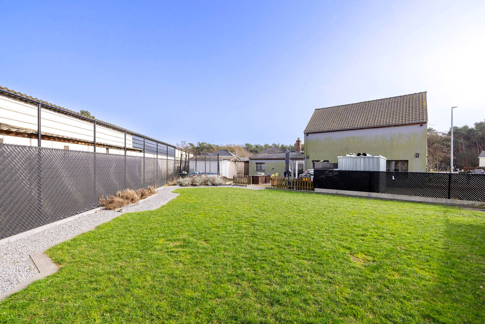 Oprit is aangelegd met 2x garage; gezellig terras aan de keuken met volledig omheinde tuin; tuinberging.