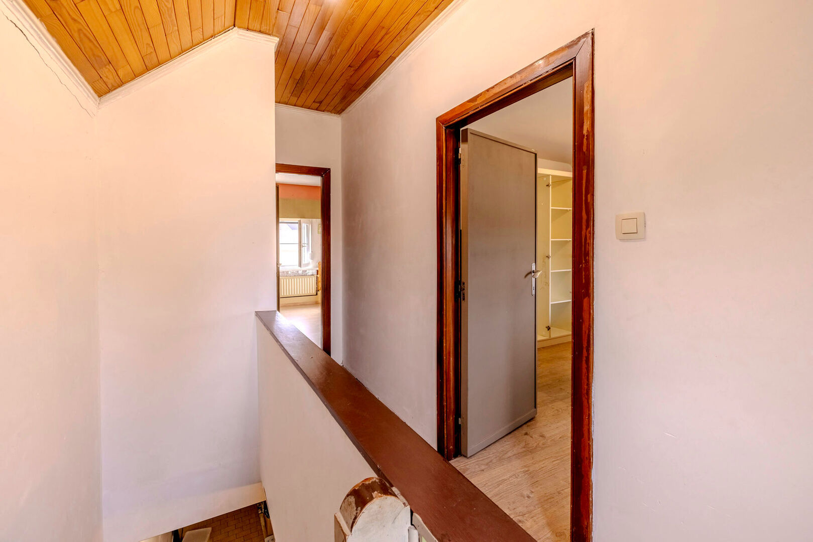 1V: masterbedroom; 2 slaapkamers (door middel van een doorloopprincipe); uittrekbare trap naar de bergzolder.